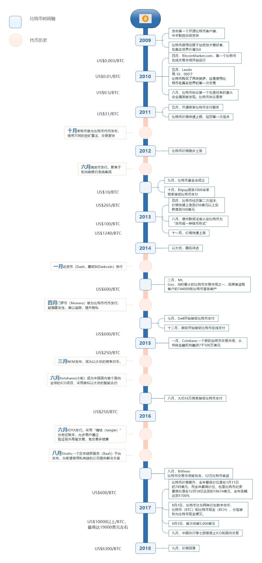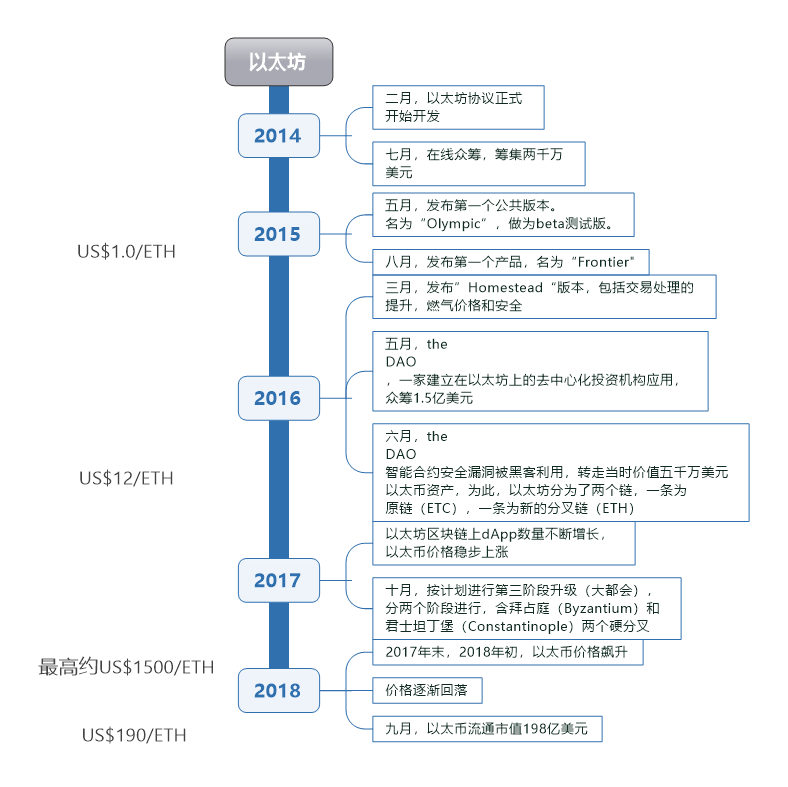 自 2014 年推出以来,以太坊区块链经历了一个显著的增长期,现在成为仅次于比特币的区块链。以下时间表显示了 2014 年以后比特币相关事件的历史。