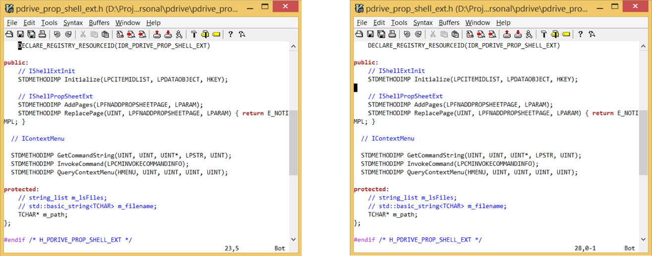 注意:Vim 具有语言感知功能,且其默认设置可以基于文件中的编程语言来改变配置以提高效率。有许多默认的配置选项,包括 axs cindent,cinoptions,indentexpr 等,没有在这里说明。 syn 是一个非常有用的命令,用于设置文件的语法以更改显示模式。