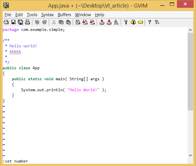 可以为单独的文件配置选项,而不必修改全局配置文件。需要的话,请打开文件并输入 :,然后键入 set命令。这样的话,配置仅对当前的文件编辑会话有效。