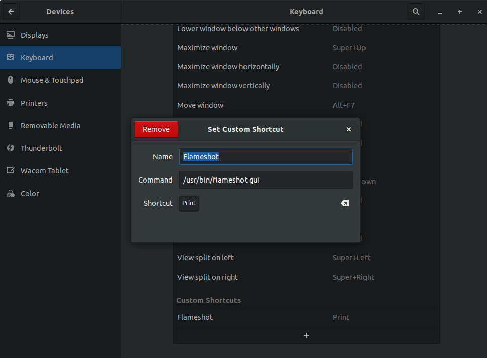 如果你在安装过程中遇到问题,可以按照官方的安装说明进行操作。安装完成后,你还需要进行配置。尽管可以通过搜索来随时启动 Flameshot,但如果想使用 PrtSc 键触发启动,则需要指定对应的键盘快捷键。以下是相关配置步骤:
