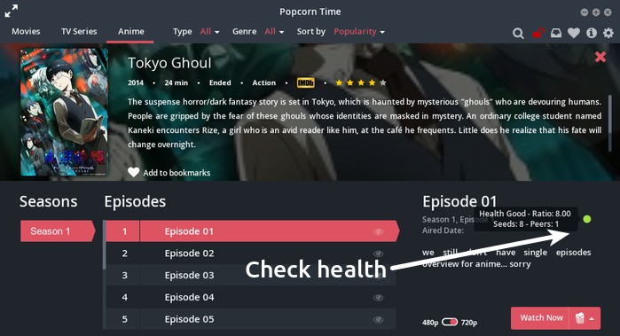 像我之前提到的,你在 Popcorn Time 的观看体验依赖于 torrent 的速度。好消息是 Popcorn Time 显示了 torrent 的信息,因此你可以知道流媒体的速度。