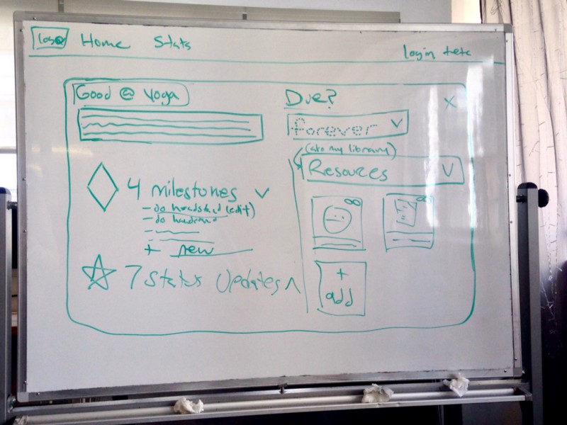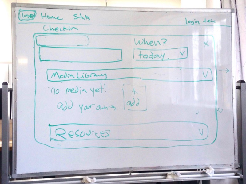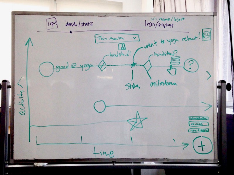 接下来,在一块白板上,我们画出了想象中应用的基本视图。结合了用户故事,以便理解在应用基本框架中这些视图将会如何工作。