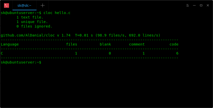 $ cloc hello.c