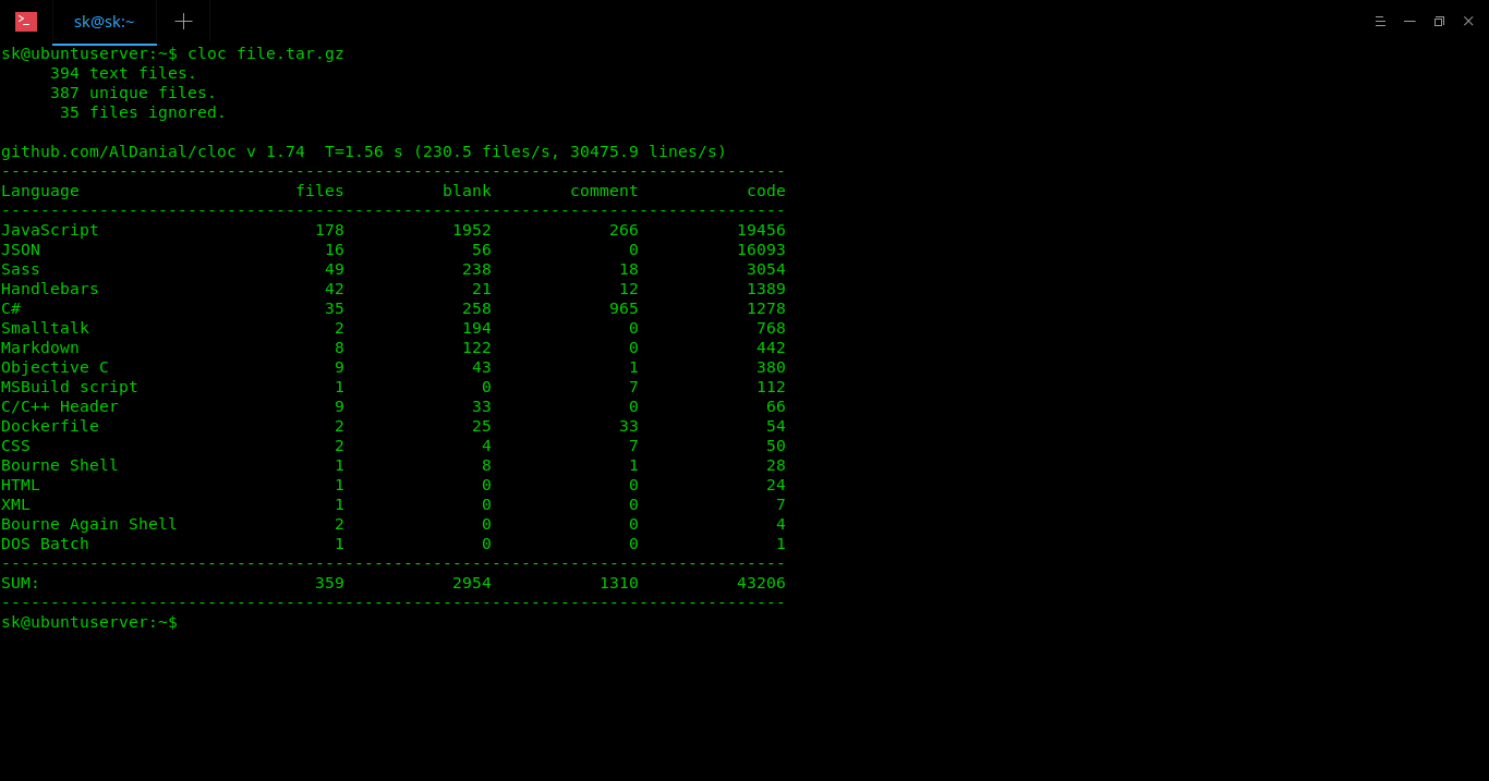 $ cloc file.tar.gz