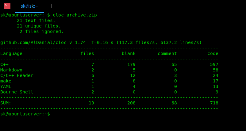 $ cloc archive.zip