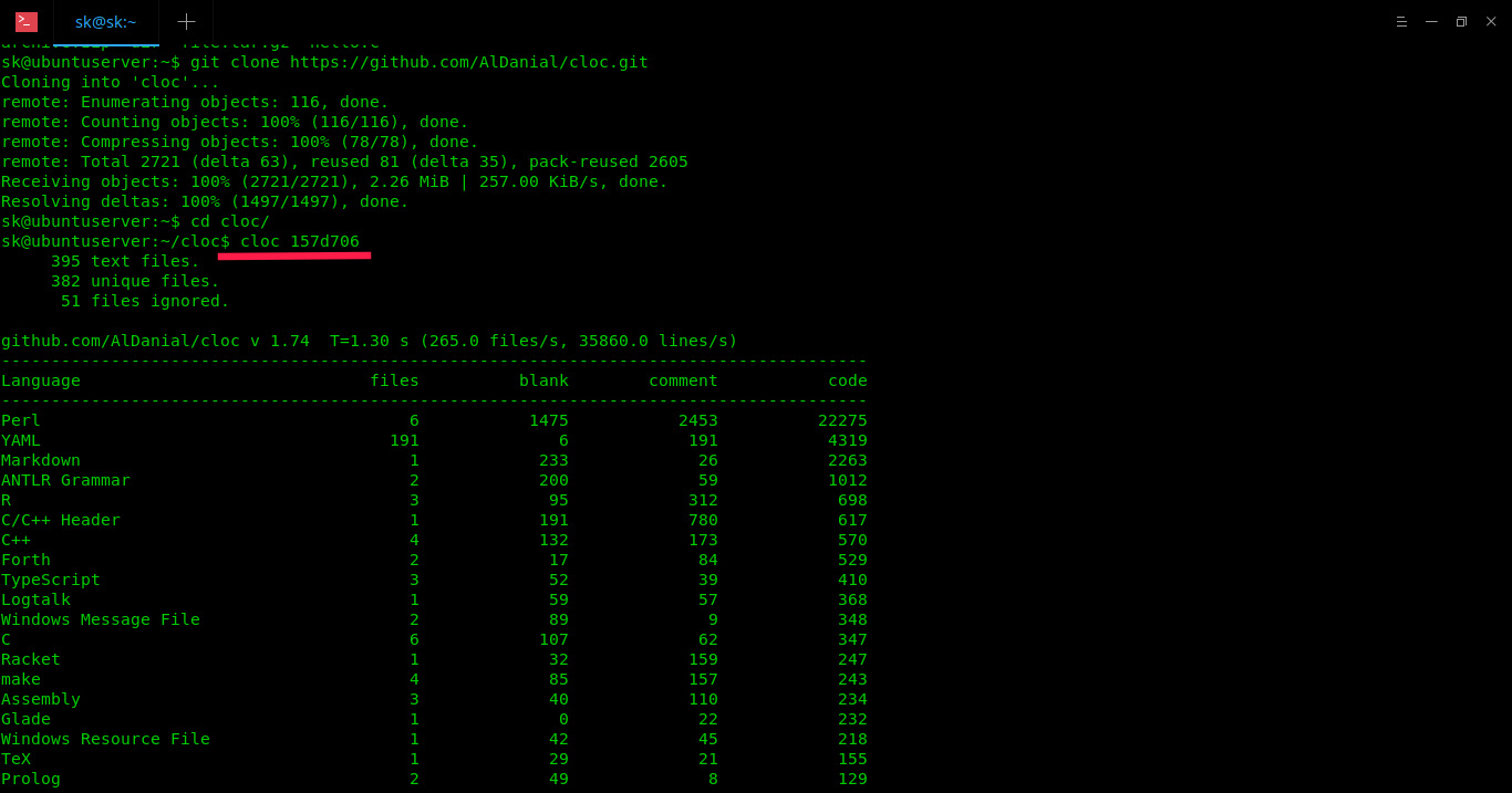 $ git clone https://github.com/AlDanial/cloc.git