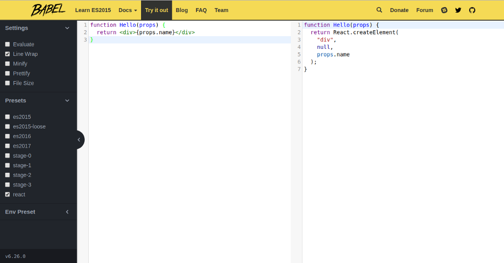 使用Babel REPL 转换 JSX 为普通 JavaScript