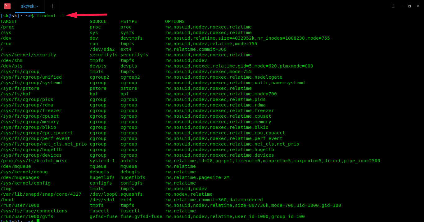 下面让我们继续看看如何使用 findmnt 来找出已挂载的文件系统。