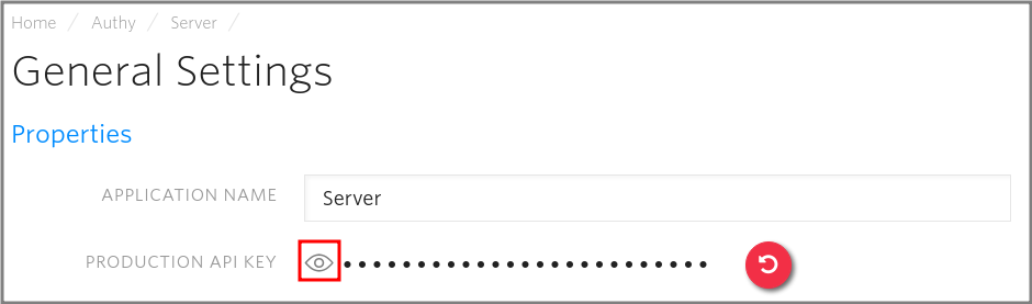 6. 从新应用程序的 “General Settings” 页面顶部获取 API 密钥。你需要 “PRODUCTION API KEY”旁边的眼睛符号来显示密钥。如图: