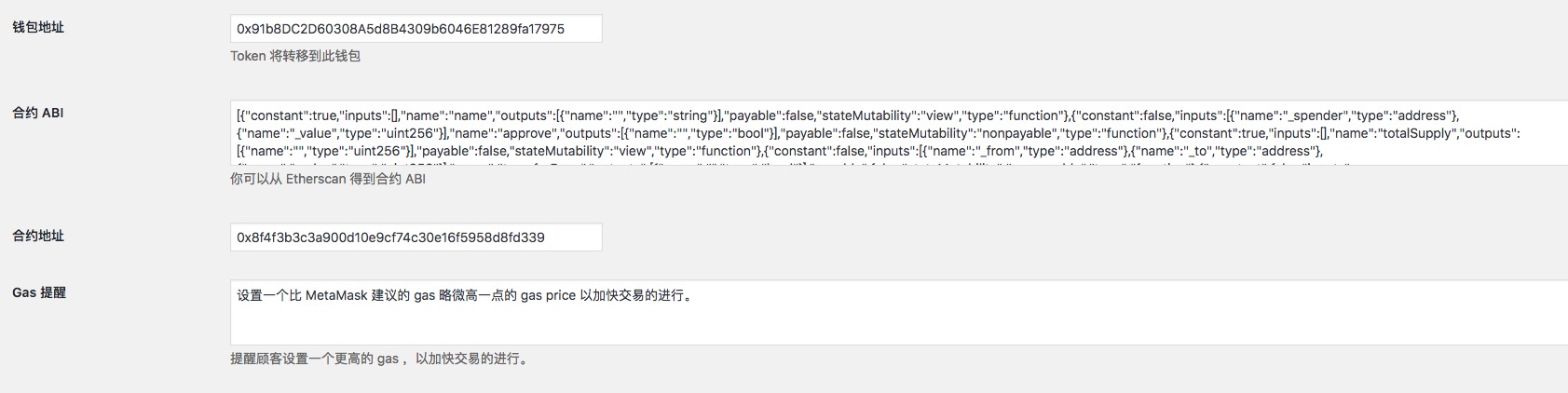 启用插件后,点击左侧菜单中的“设置”-“WooCommerce ERC20 货币自定义”,进入到插件的设置界面。