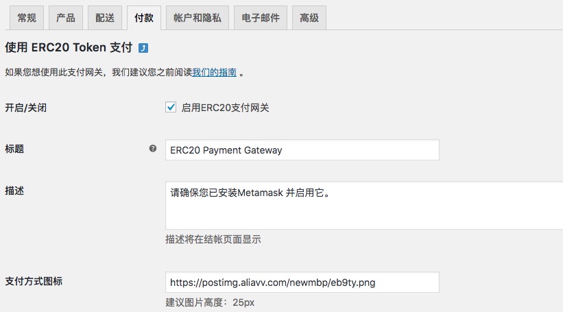 支付方式设置完成后,接下来设置与 ERC20 通证有关的内容。