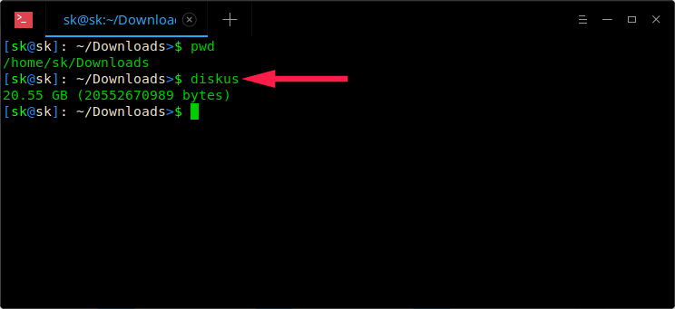 $ wget "https://github.com/sharkdp/diskus/releases/download/v0.3.1/diskus_0.3.1_amd64.deb"