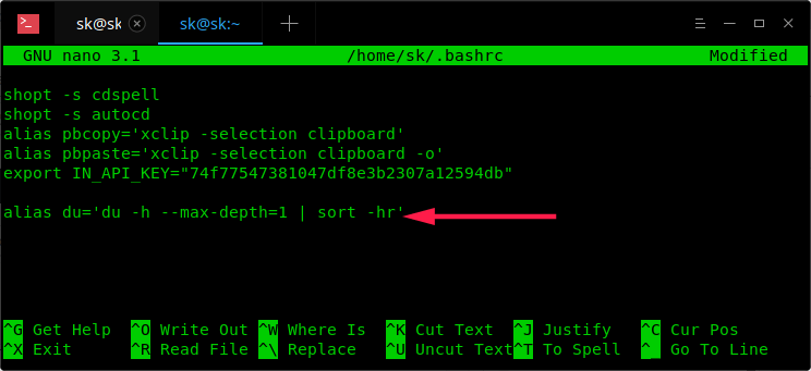 $ nano ~/.bashrc