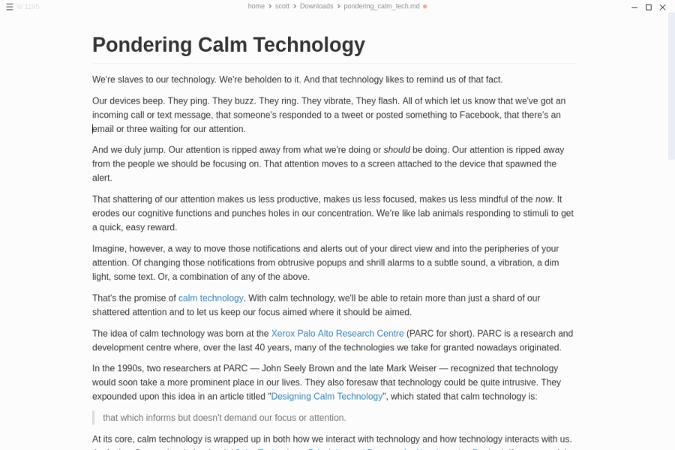与 Ghostwriter 相比,你只能将你的文档保存为 HTML 或 PDF 格式。这个输出看起来也不是很糟糕。