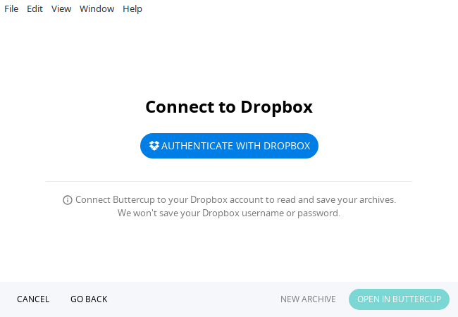 你还可以在添加存档时在 Buttercup 的欢迎界面连接这些服务。