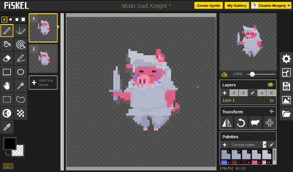 在这个 Jam 期间,Piskel 极大地帮助我们的两个功能是 洋葱皮 Onion skin 和 精灵序列图 spritesheet 导出。