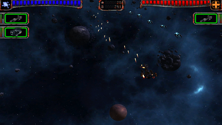 太空危机 是一个近现代太空背景下的滚动页面射击游戏。开发初期它是一个闭源游戏,但它的代码和素材而后以开源许可证发布了。游戏玩法和大多数此类游戏大同小异,但它有质量极高的 3D 画面。飞船和武器升级可以通过击杀敌人所获得的点数购买。游戏的难度可以选择,因此适合新手以及想要追求挑战的硬核玩家。