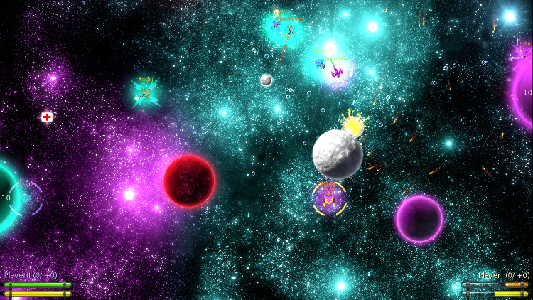 火星 是一个自上而下的太空射击游戏,游戏机制类似传统街机游戏 “ 爆破彗星 Asteroids ”。玩家在操控一个太空船的同时向敌方射击并躲避敌军的弹幕射击。游戏有标准的死斗和团体死斗模式,除此之外也有更新鲜的比赛形式 —— 例如在一个模式下,玩家需要控制一个球使其进入敌方母星。该游戏支持本地多人游戏,但遗憾的是不支持多人联机。该游戏的开发更新似乎已经停止,所以该游戏之后增加联机模式的几率很小,但就算没有联机支持,这个游戏仍然值得一试。