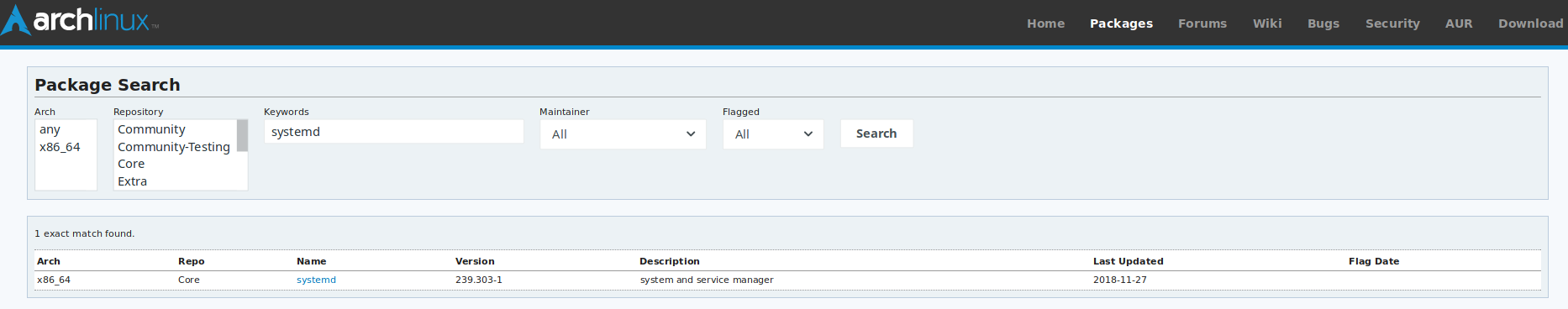 为了交叉检查上述结果,我将测试在 https://www.archlinux.org/packages/ 列出的一个包以确认漏洞是否仍处于开放状态或已修复。是的,它已经被修复了,并于昨天在社区仓库中发布了更新后的包。