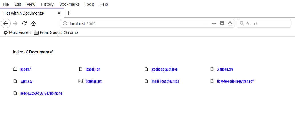 serve 实用程序以简单的布局显示给定目录的内容。你可以下载(右键单击文件并选择“将链接另存为…”)或只在浏览器中查看它们。