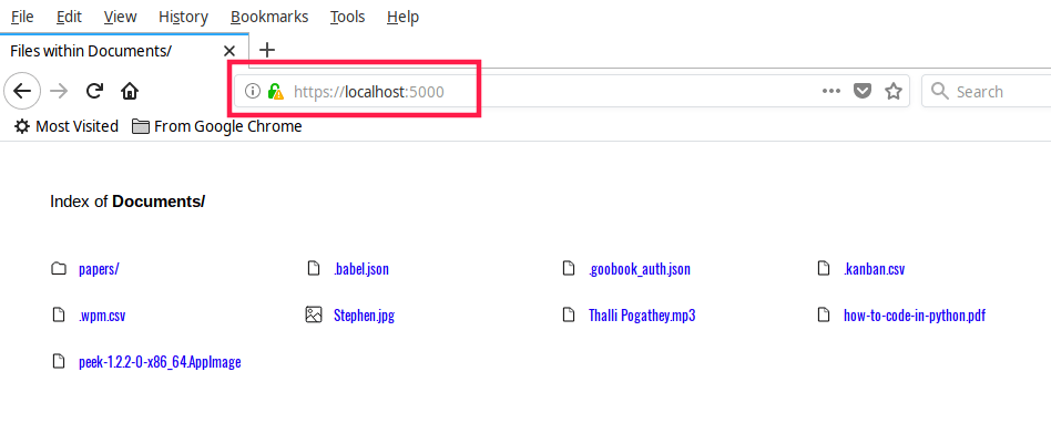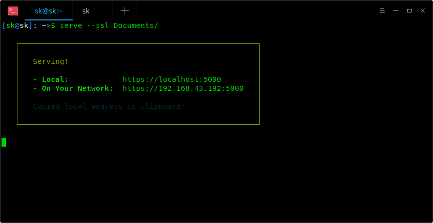 $ serve --ssl Documents/