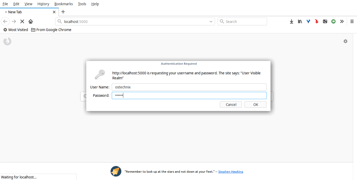 $ SERVE_USER=ostechnix SERVE_PASSWORD=123456 serve --auth