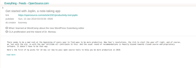 它使用简化的 HTML 消息来显示邮件,或者你也可以将其设置为查看纯文本版本。由于 Cypht 不会加载远程图像(以帮助维护安全性),HTML 渲染可能有点粗糙,但它足以完成工作。你将看到包含大量富文本邮件的纯文本视图 —— 这意味着很多链接并且难以阅读。我不会说是 Cypht 的问题,因为这确实是发件人所做的,但它确实降低了阅读体验。阅读新闻源大致相同,但它们与你的电子邮件帐户集成,这意味着可以轻松获取最新的(我有时会遇到问题)。