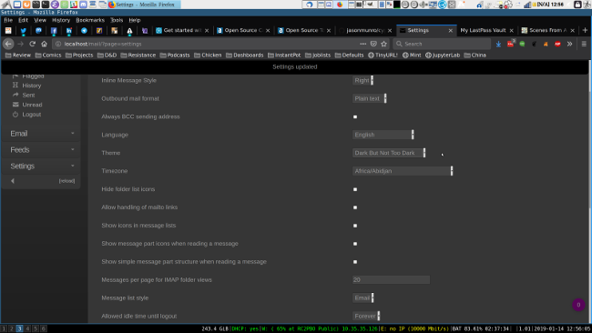 用户可以使用预配置的邮件服务器并添加他们使用的任何其他服务器。Cypht 的自定义选项包括纯文本与 HTML 邮件显示,它支持多个配置文件以及更改主题(并自行创建)。你要记得单击左侧导航栏上的“保存”按钮,否则你的自定义设置将在该会话后消失。如果你在不保存的情况下注销并重新登录,那么所有更改都将丢失,你将获得开始时的设置。因此可以轻松地实验,如果你需要重置,只需在不保存的情况下注销,那么在再次登录时就会看到之前的配置。