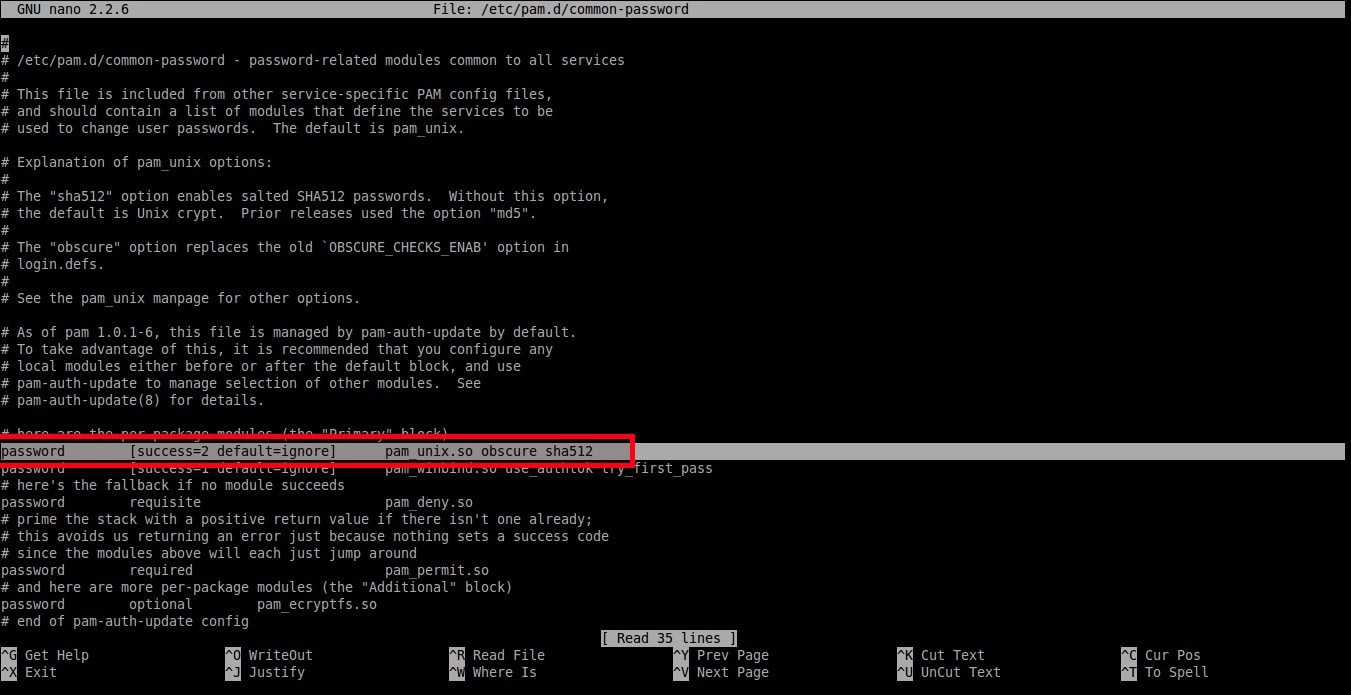 password        [success=2 default=ignore]      pam_unix.so obscure use_authtok try_first_pass sha512 remember=5