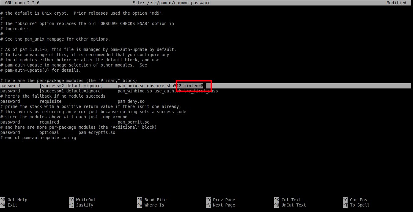 在末尾添加额外的文字:minlen=8。在这里我设置的最小密码长度为 8