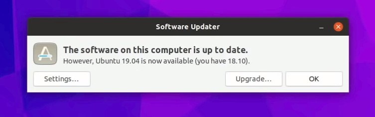 现在再次运行更新管理器时,你应该会看到 Ubuntu 19.04。