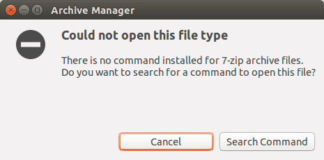 默认大多数 Linux 发行版不支持 7Zip。如果你试图提取它,你会看见这个错误: