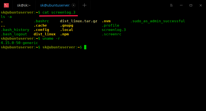 Screen used by sk <sk> on ubuntuserver.