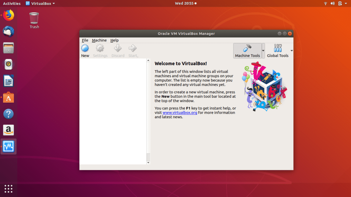 VirtualBox 实际做的是让你在宿机操作系统里可视化地运行访客操作系统。它可以创建虚拟硬盘并在上面安装访客操作系统。你可以在 Ubuntu 软件中心直接下载和安装它。