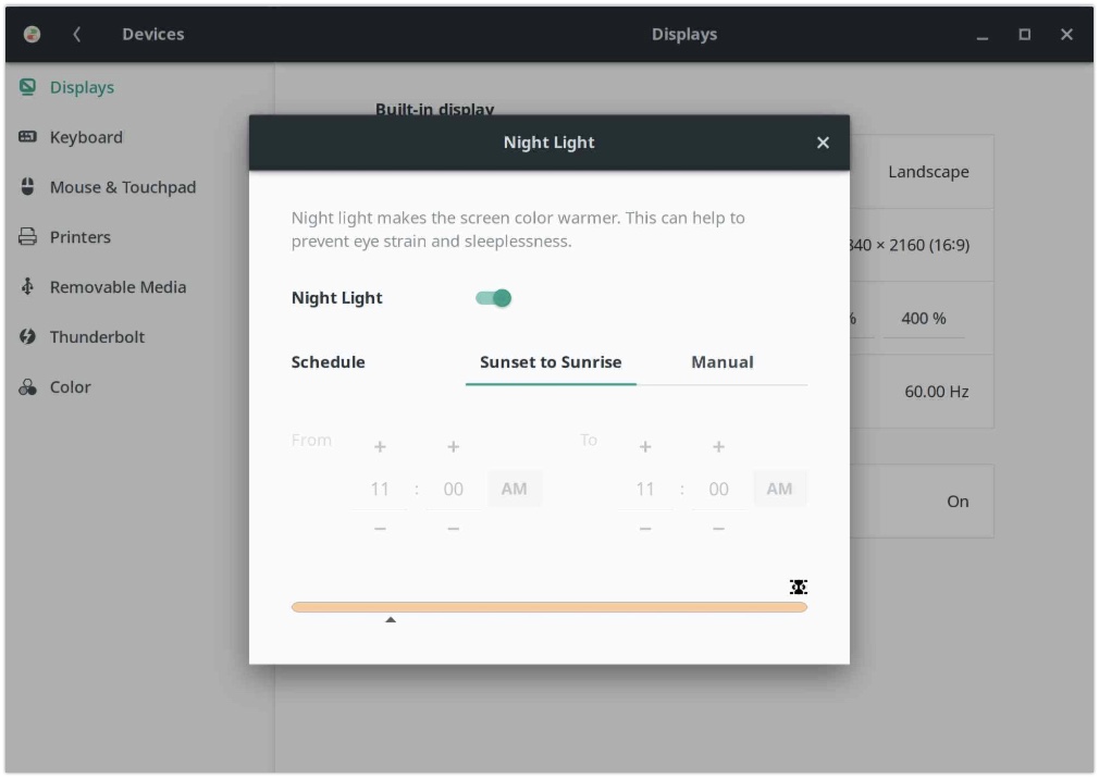 为启用这个特色,导航到系统设置 » 设备 » 显示 ,并打开夜光。