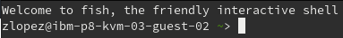 将 fish 配置为默认 shell 程序后,命令提示符将类似于下图所示。如果尚未将 fish 配置为默认 shell,只需运行 fish 命令以在当前终端会话中启动。