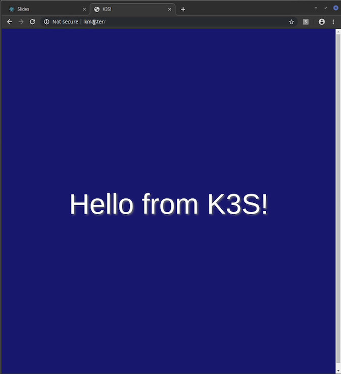 Pod 运行之后,就该尝试了。打开浏览器,然后在地址栏中输入 kmaster。