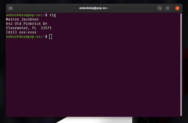 要生成一个随机的假身份吗?我推荐你用 rig 命令。你在终端运行它,就会生成一个假的身份。