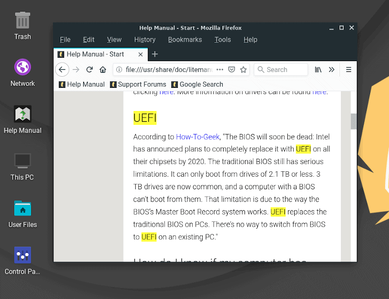 Linux Lite 5.0 支持开箱即用的 UEFI。但是,他们建议禁用安全启动,即使该功能可以工作。