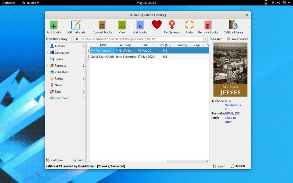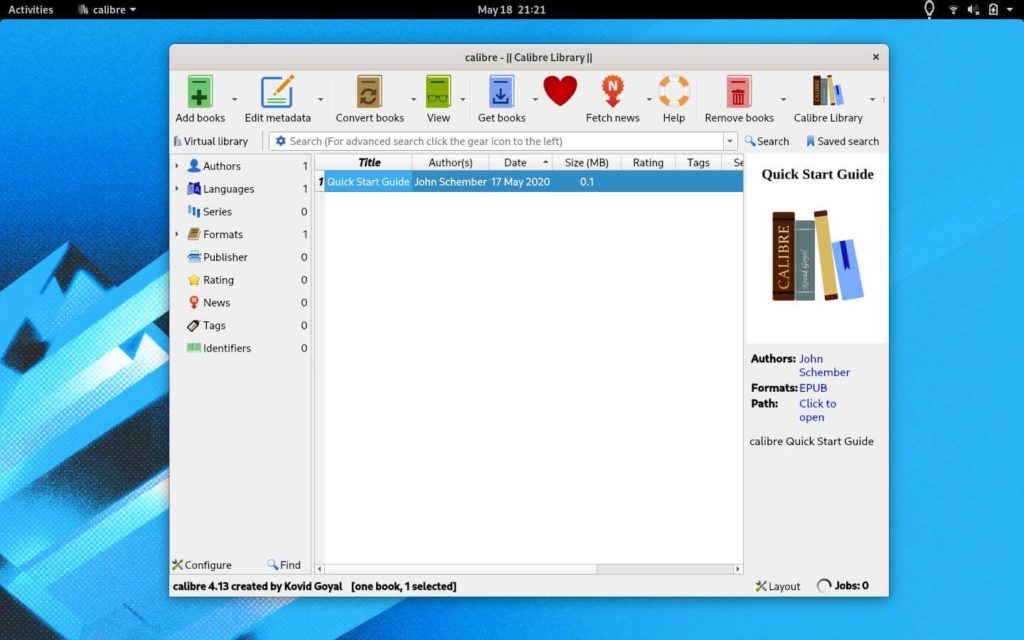 首先,安装一个名为 calibre 的应用程序。calibre 不仅仅是一个电子书阅读器,它也是一个电子书管理器系统。你可以从软件中心安装它,也可以从终端安装它: