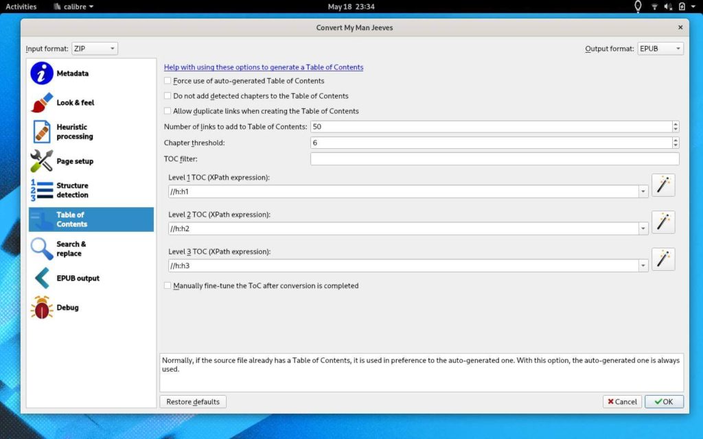 在这个方法中,你可以在 LibreOffice、ghostwriter,或者其它你选择的编辑器中编写你的文档。确保书籍的标题被格式为“标题 1”,章节被格式为“标题 2”,子章节被格式为“标题 3”。