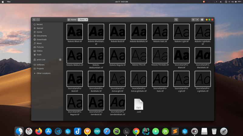 如果你想节省时间并一次安装所有的字体,提取其中所有的字体到你的家目录(~/.fonts