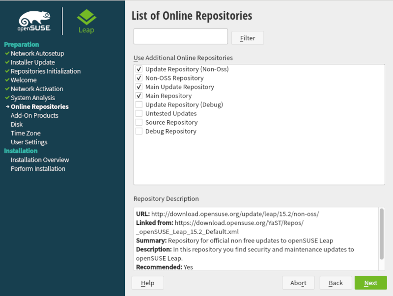 openSUSE 的安装程序已经非常不错。但是,在最新的 Leap 15.2 版本中,它们添加了更多信息,兼容从右至左语言(如阿拉伯语)以及一些小的更改,从而在安装时更容易选择。