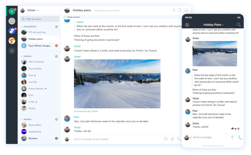 Wire 是一个十分流行的开源的安全消息平台,为商企用户量身打造。它也提供视频电话或者网络会议选项。