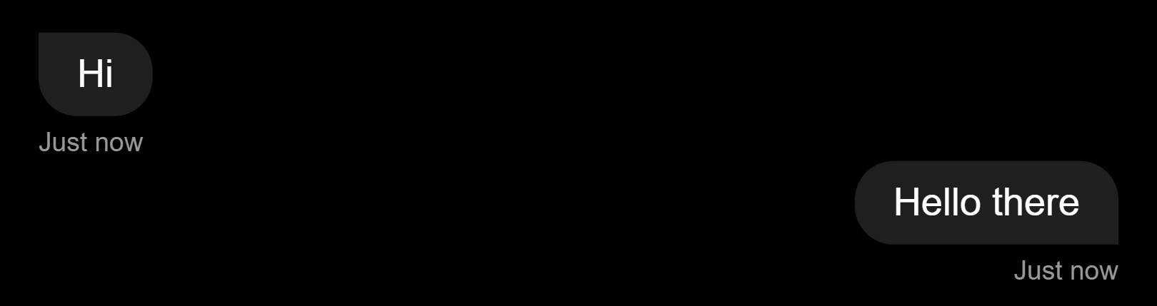 每个消息条目显示消息内容本身及其时间戳。使用 .mine,我们可以将不同的 css 类附加到条目,这样您就可以将消息显示在右侧。