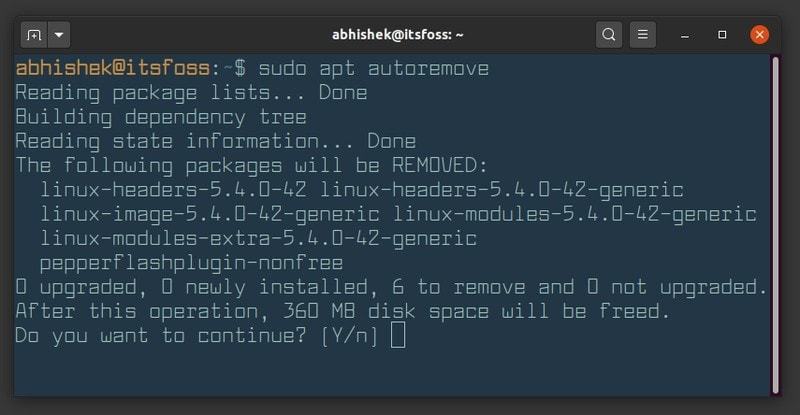 在你输入命令后,它将列出将被移除的东西,你只需要确认操作即可。如果你很好奇它将移除什么,你可以仔细检查一下看看它实际移除了什么。