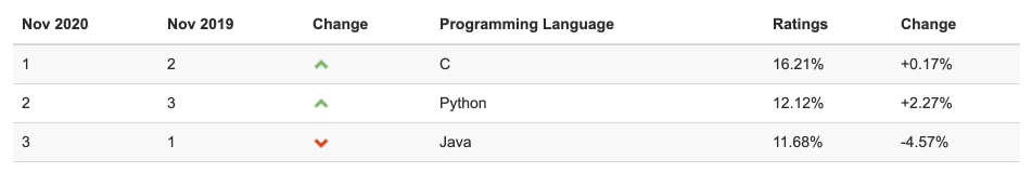 编程语言排行榜:Python 排名第二,首次领先于 Java