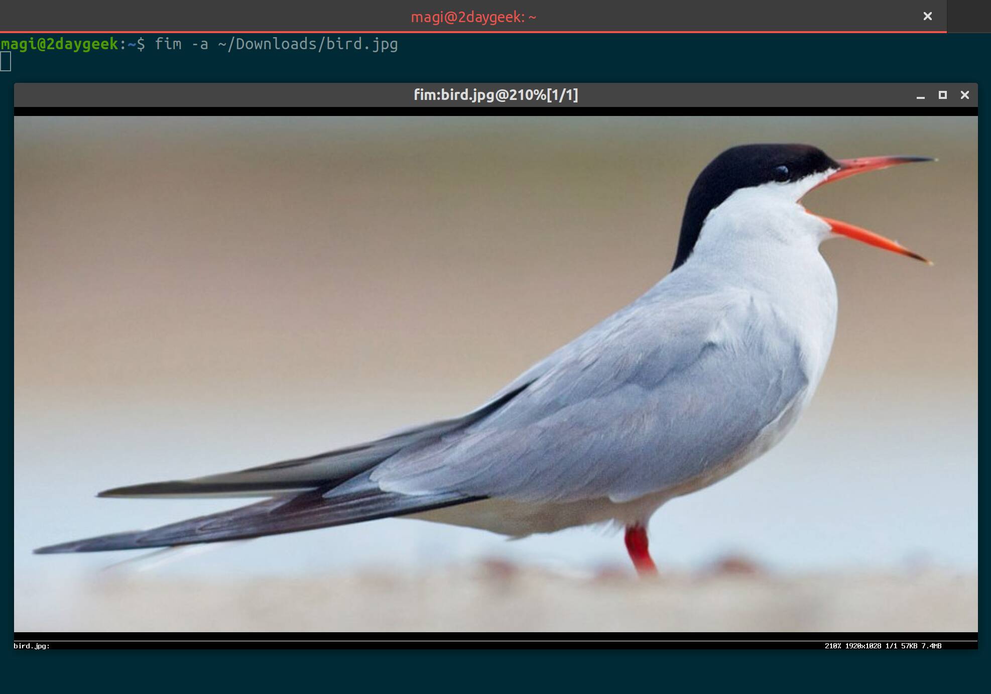 $ display -geometry 1000x600 ~/Downloads/bird.jpg