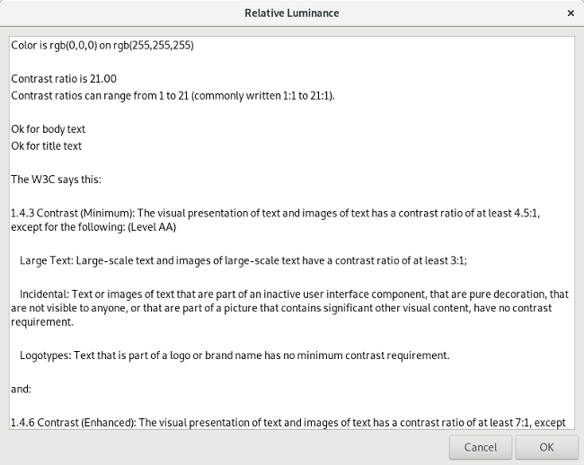) | zenity --text-info --title='Relative Luminance' --width=800 --height=600