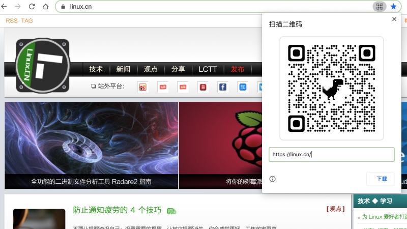 Chrome 88 中普遍推出了通过二维码分享网页的功能